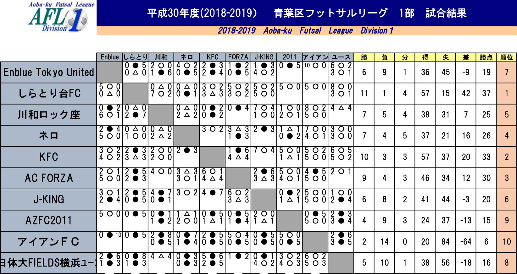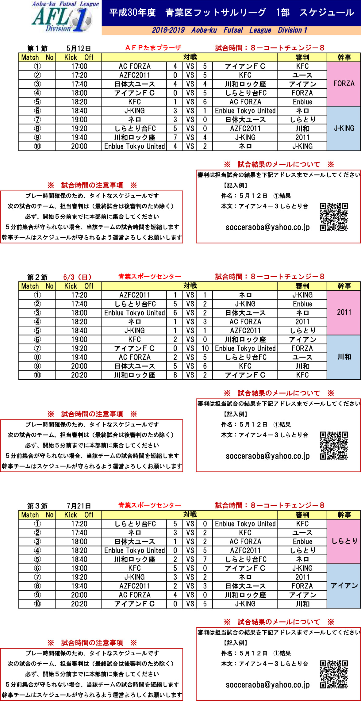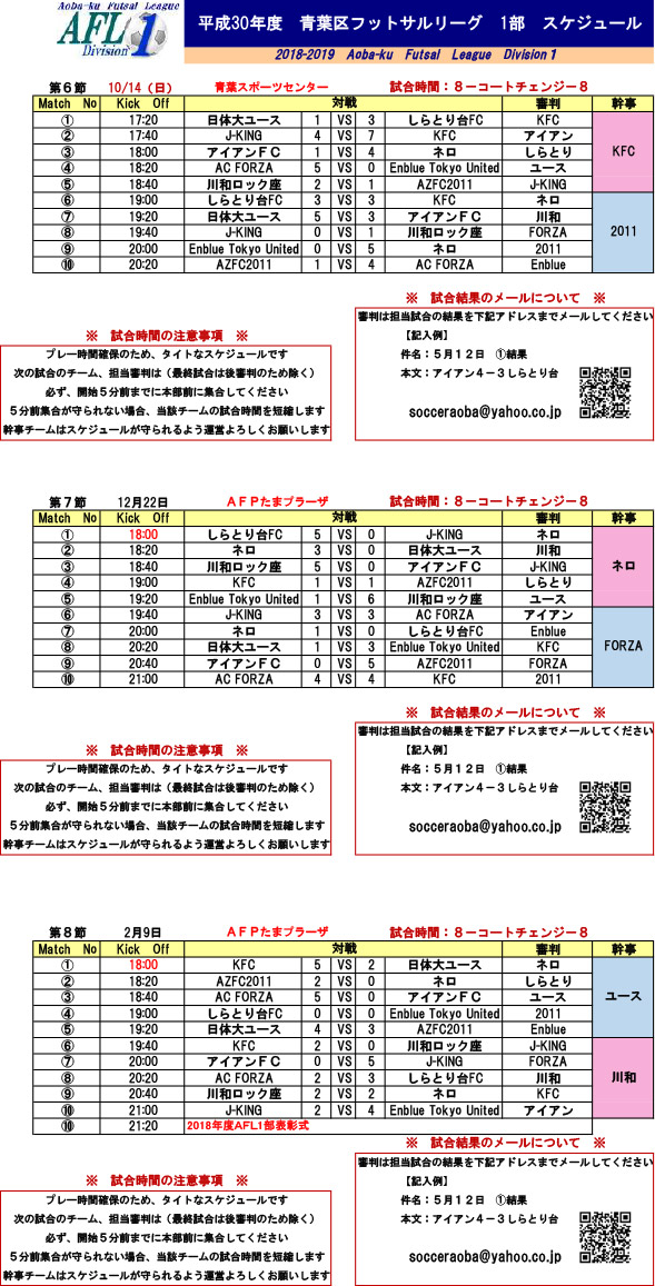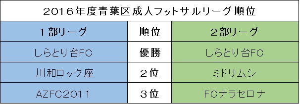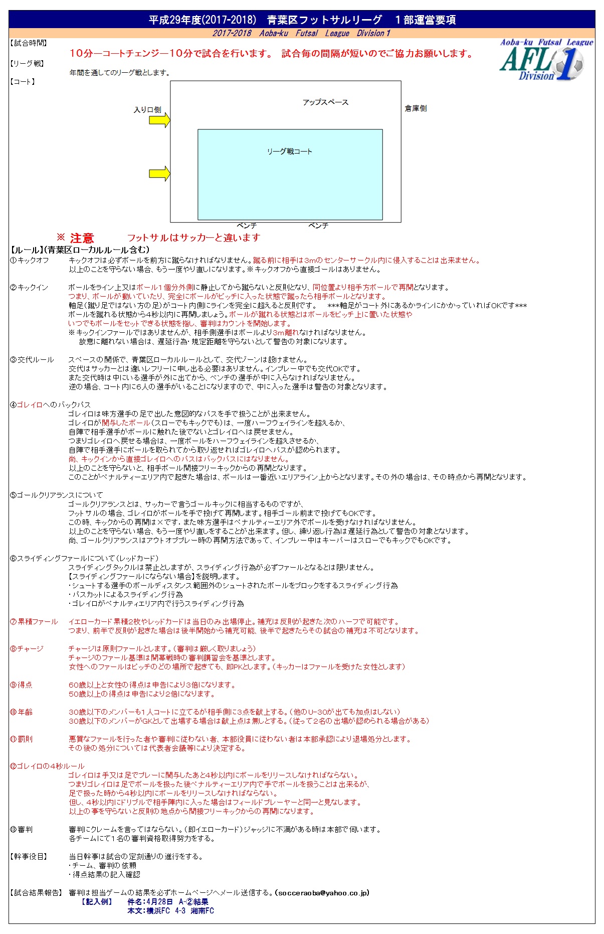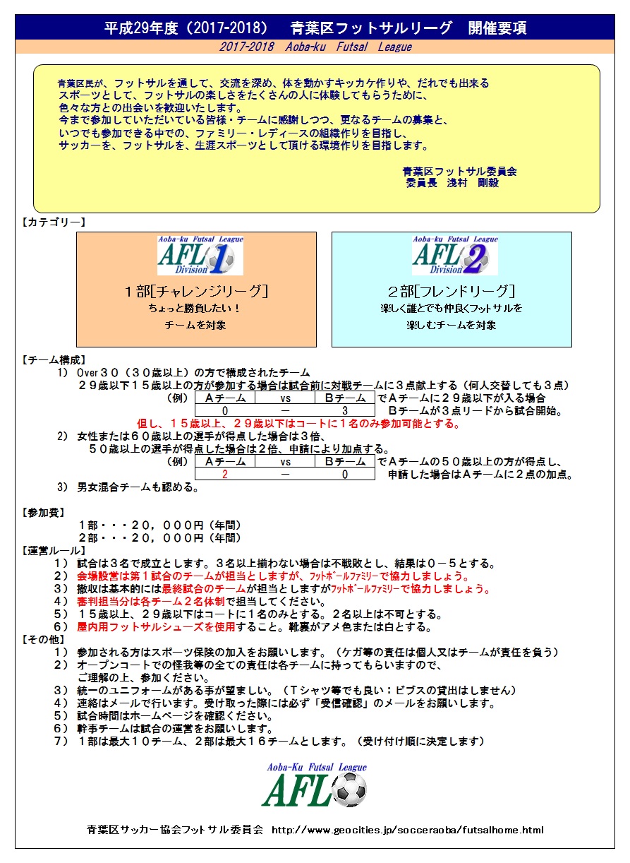 ・平成29年度(2017-2018)青葉区フットサルリーグ1部運営要綱