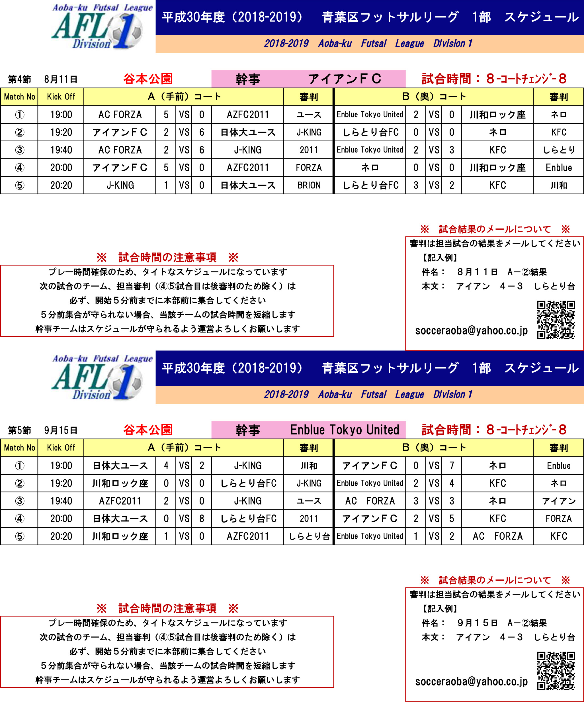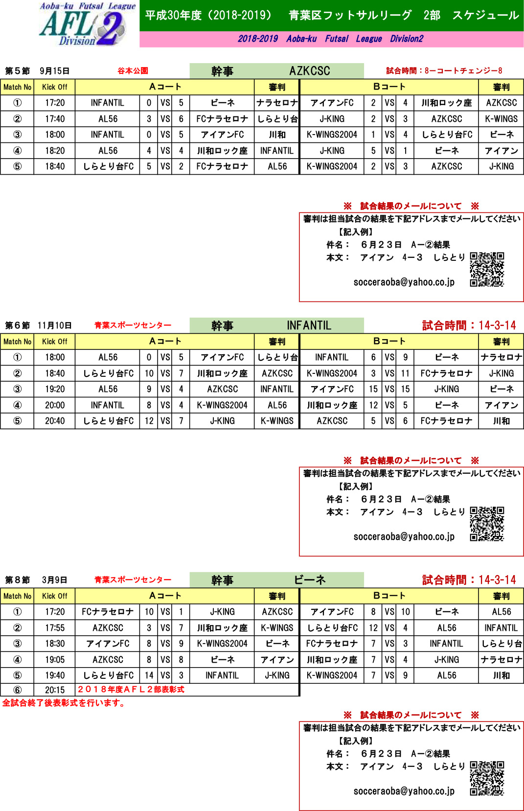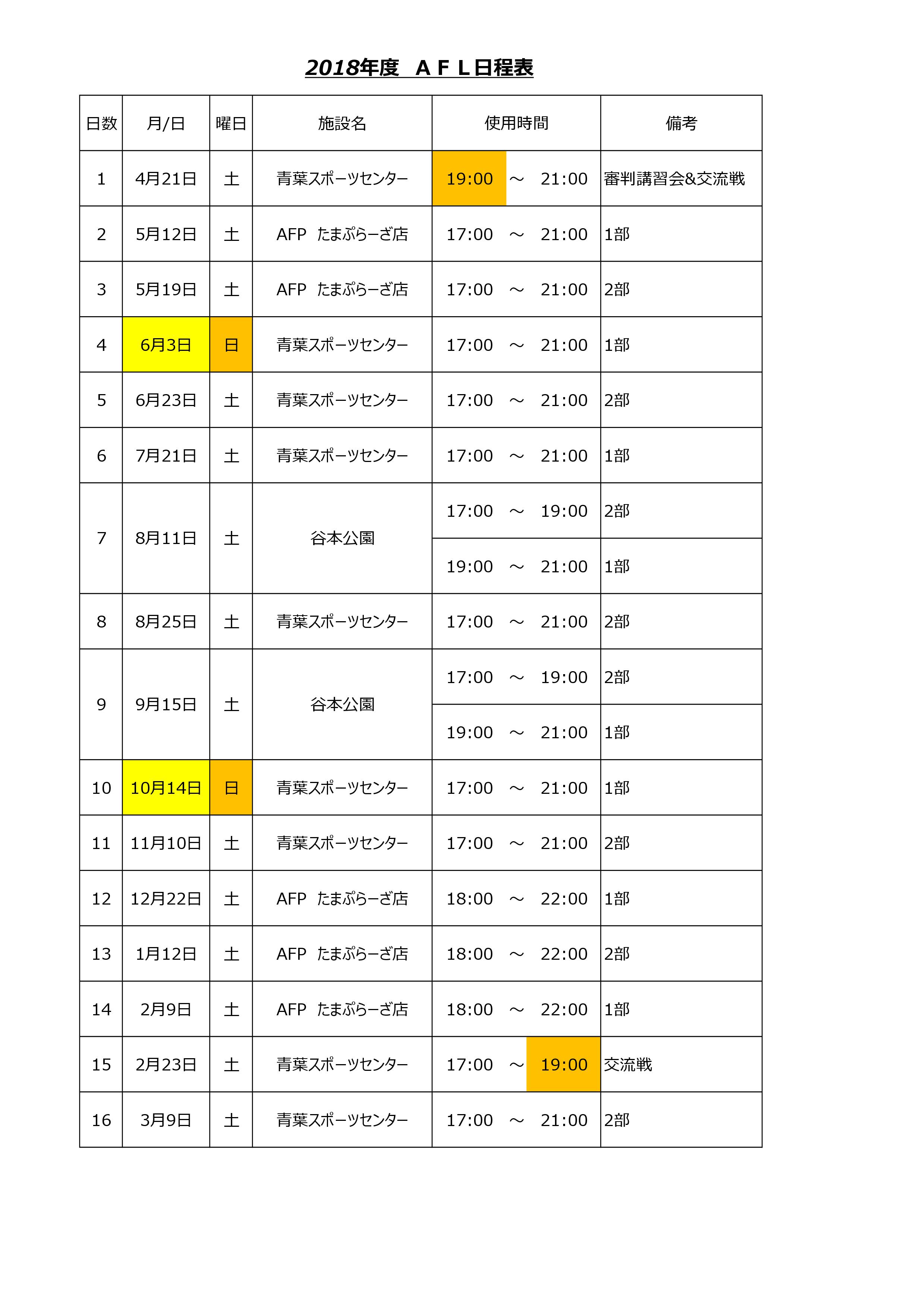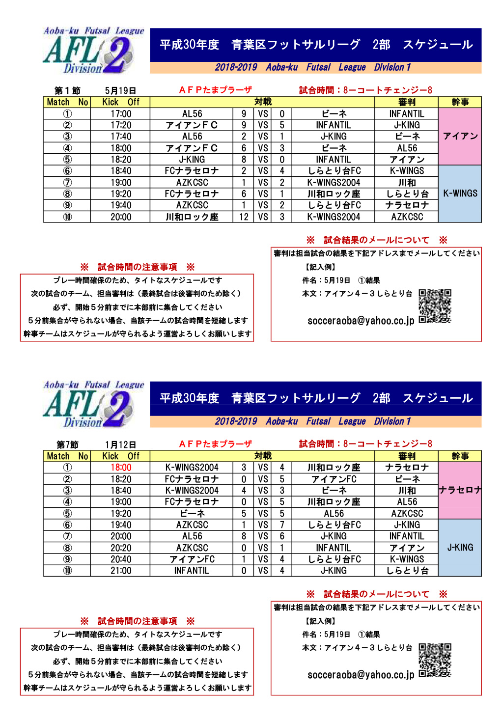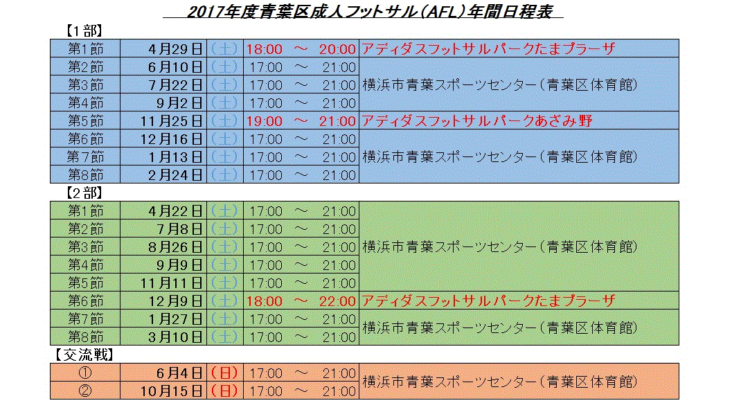 ・2017年度青葉区聖人フットサル(AFL)年間日程表