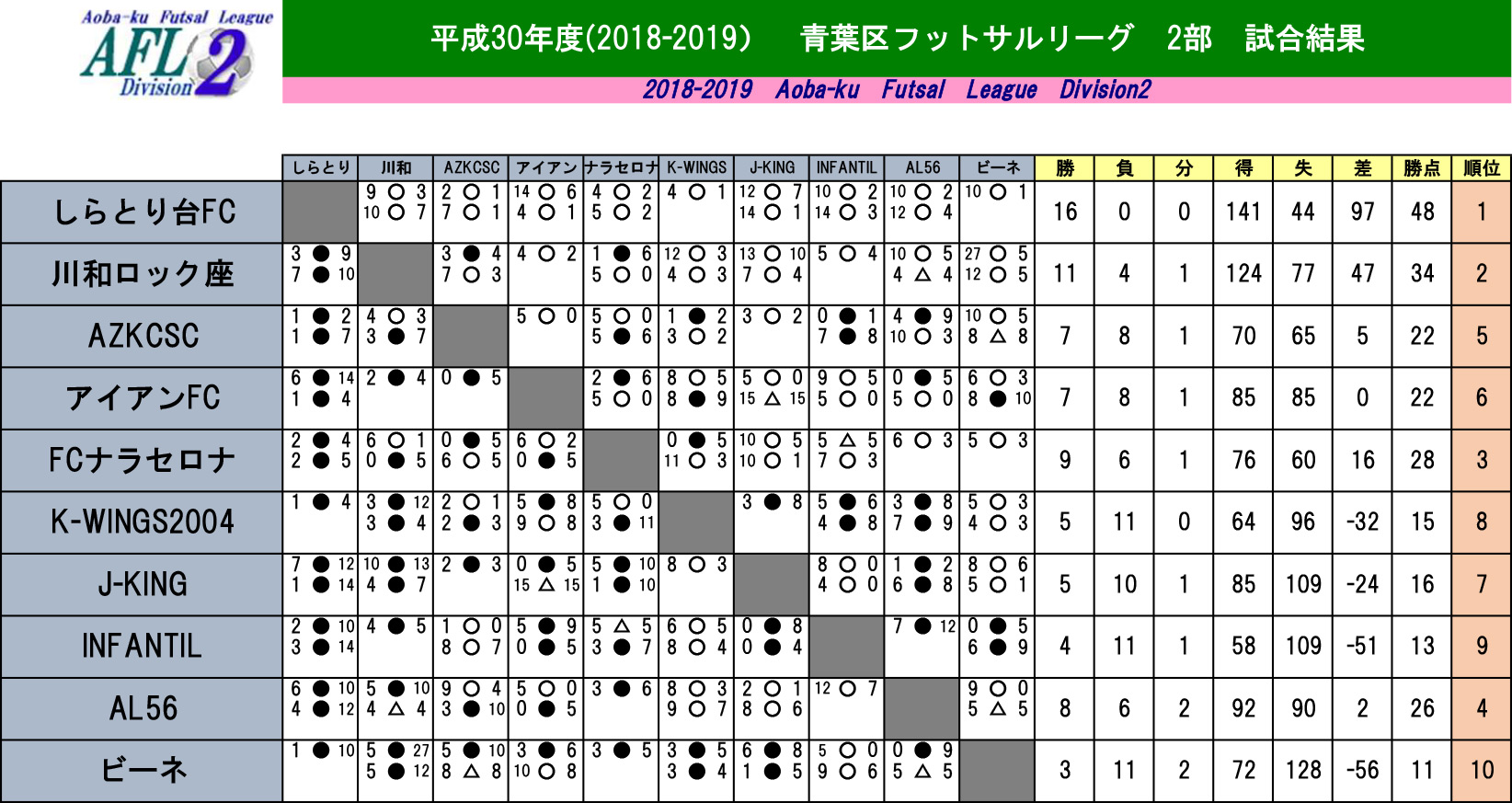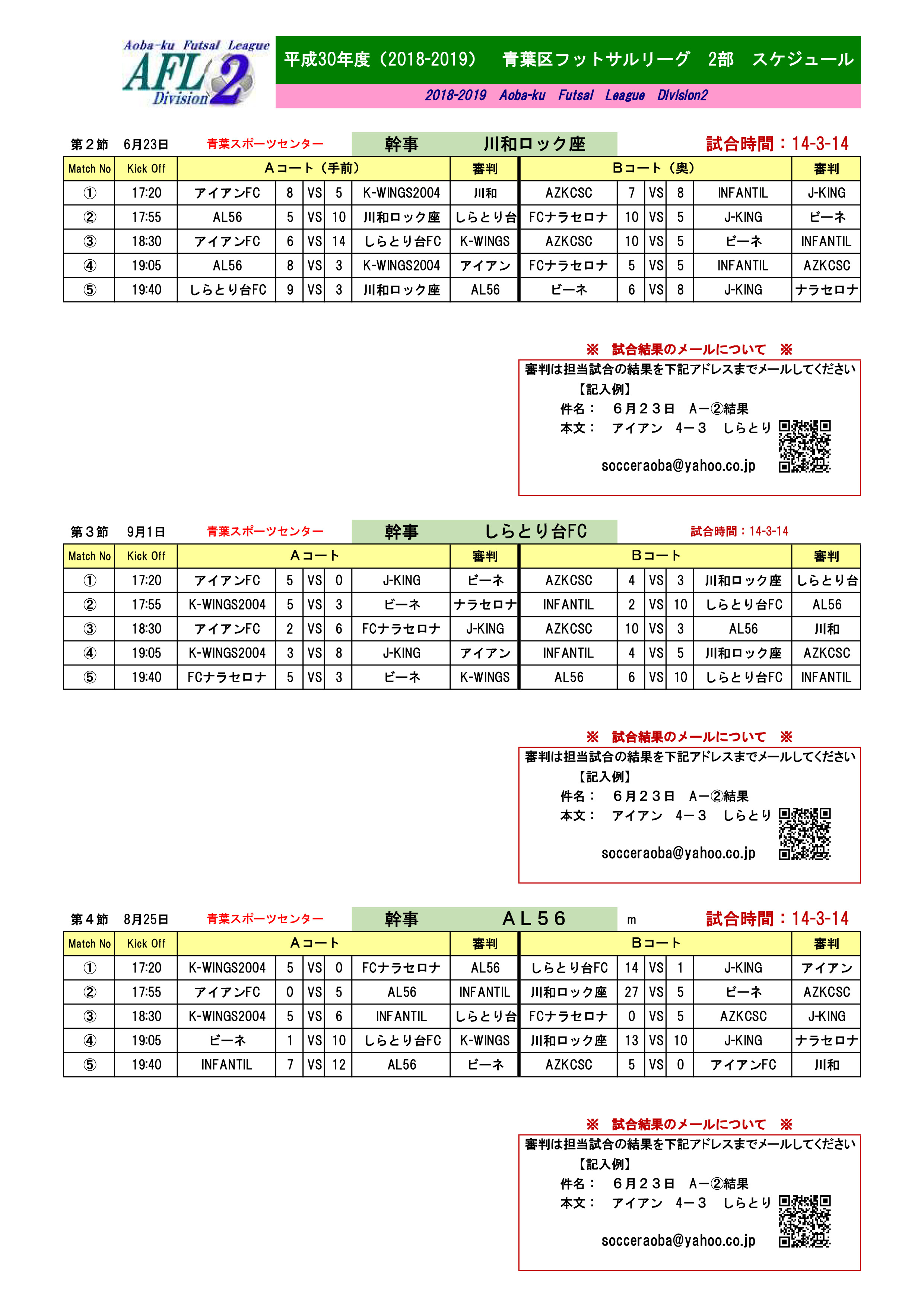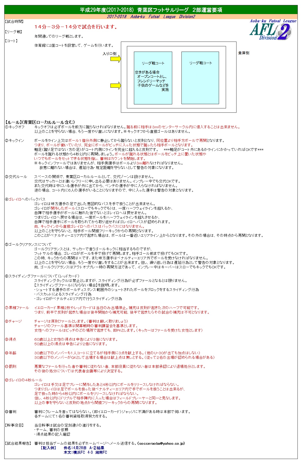 ・平成29年度(2017-2018)青葉区フットサルリーグ2部運営要綱
