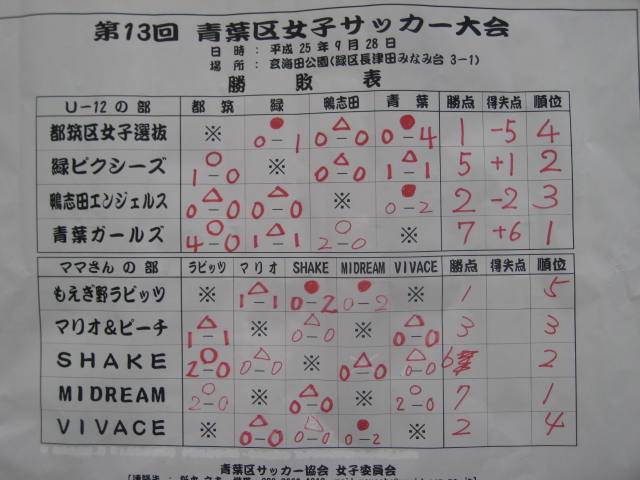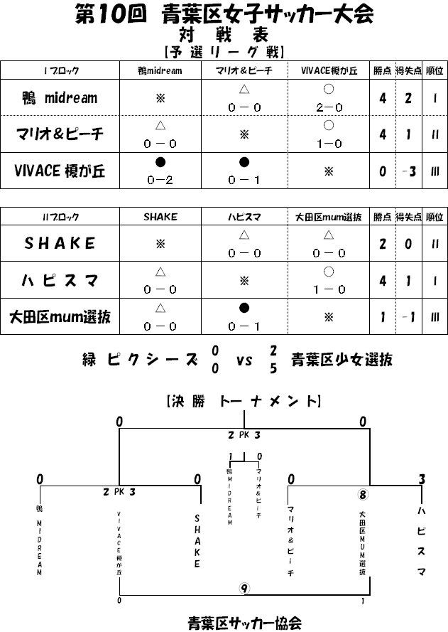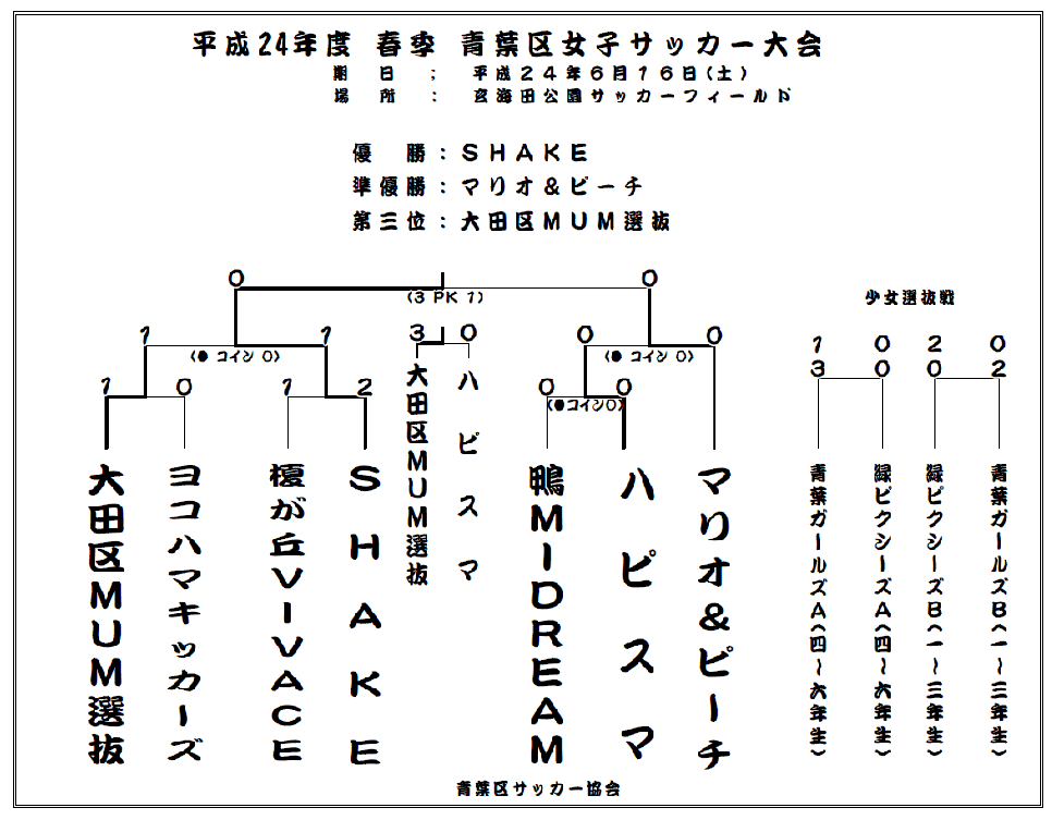平成23年度 春季 青葉区女子サッカー大会結果報告