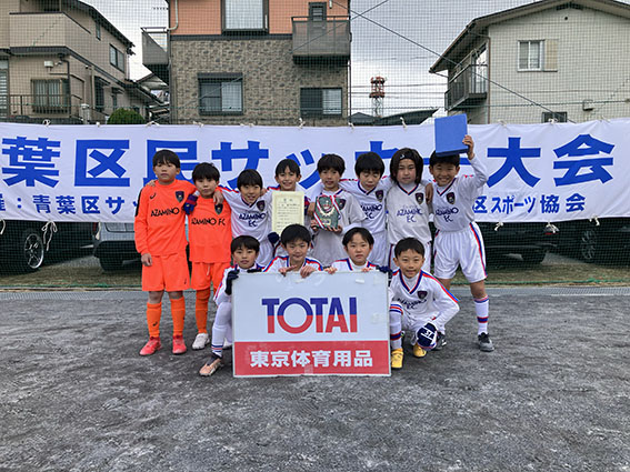 優勝:あざみ野FC(B)/準優勝:青葉FC(B)/3位:しらとり台FC/敢闘賞:あざみ野FC(W)